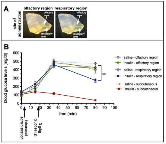- Lochhead, J.J.; Kellohen, K.L.; Ronaldson, P.T.; Davis, T.P. Distribution of insulin in trigeminal nerve and brain after intranasal administration. Sci. Rep. 2019, 9, 2621. [Google Scholar] [CrossRef] [PubMed] [Green Version]