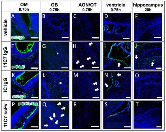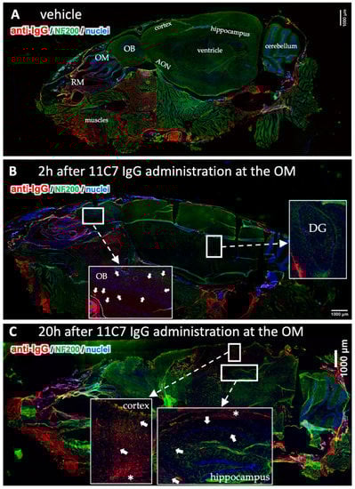 3.4. Fc-Dependent Uptake into Olfactory Mucosa and Transport along Neuronal Bundles to the CNS