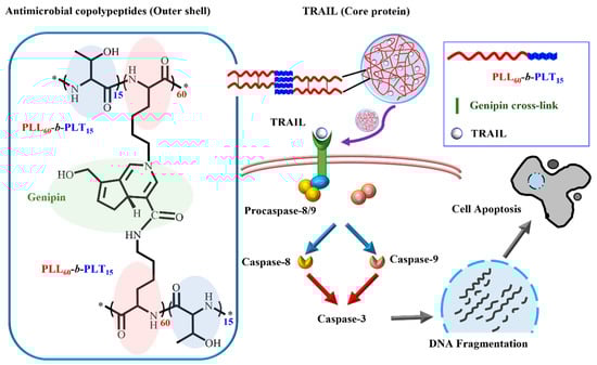 Schematic illustration of TRAIL encapsulated in bactericidal polypeptide nanogels, adapted from [], published by Elsevier, 2019.