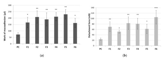 Determination of the Mucoadhesive Behavior in Contact with Porcine Buccal Mucosa (Maximum Detachment Force and Work of Adhesion)