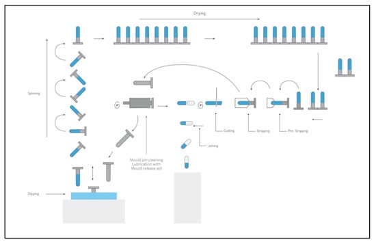 There are two choices in capsule polymers that can be used for DPI formulations: hard gelatin capsules or HPMC capsules. Figure 2 shows the step of capsule process production, described here for the two types of material employed.