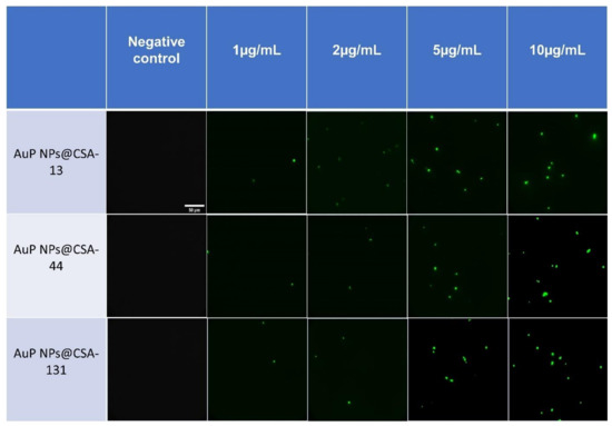 2.2.2. Gold Nanoparticles (Au NPs) Functionalized by CSA-13, CSA-44, and CSA-131