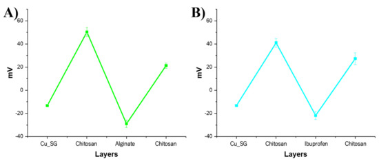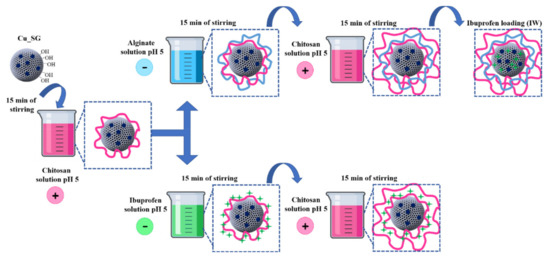 2.2. LbL-Coated Cu-Substituted MBGs as Ibuprofen Delivery System