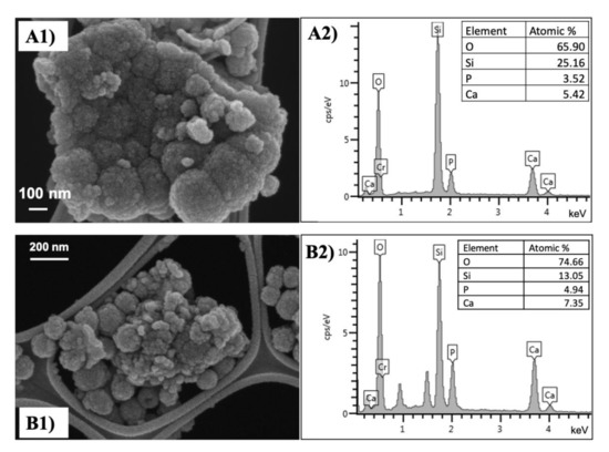 2.2.1. Cu-Substituted MBG Nanoparticles