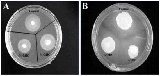 For MFC values, each well without growth was cultured onto the SDA plates and incubated for 24 h at 37 °C. The first well with no growth on the agar plate after incubation was calculated as MFC.
