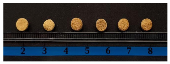 - Quodbach, J.; Kleinebudde, P. Performance of tablet disintegrants: Impact of storage conditions and relative tablet density. Pharm. Dev. Technol. 2015, 20, 762–768. [Google Scholar] [CrossRef]
