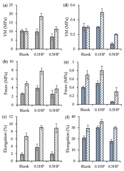 Moreover, the tendon mechanical properties are directly related to ECM hierarchical structure mimicked using the tubular aligned conformation and the polymer matrix doping with HP nanoparticles—0.1% HP proved to be suitable to reinforce the structure; in fact, it was demonstrated that the mechanical properties can be remarkably improved by adding the optimum amount of nanoparticles, due to their fine dispersion. On the other hand, higher concentrations could affect nanoparticle dispersion and particle inhomogeneity, and agglomeration lead to structural alterations and, consequently, a reduction of the mechanical properties [30].