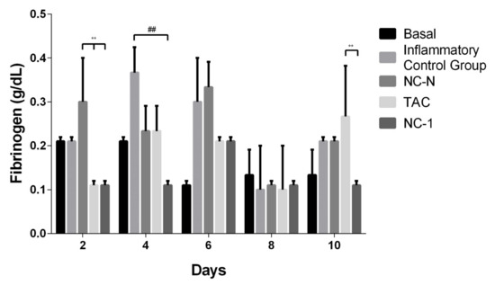Fibrinogen dosage was performed according to Shalm, Jain, and Carroll (1975) [24] using the plasma precipitation technique at 56 °C. In summary, an aliquot of the blood sample was centrifuged in a capillary tube, and the serum refractive index was measured. Another aliquot of the blood was heated at 56 °C for 5 min and centrifuged, and the refractive index was also measured. Fibrinogen concentration was calculated by subtracting the values obtained before and after fibrinogen precipitation.