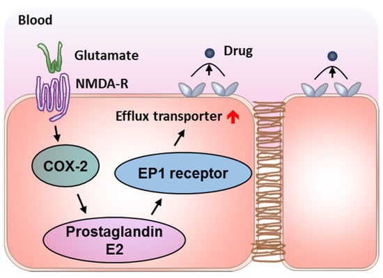The signaling pathway of glutamate/NMDA-R/COX-2/prostaglandin E2 EP1 receptor induces the upregulation of efflux transports in epilepsy.