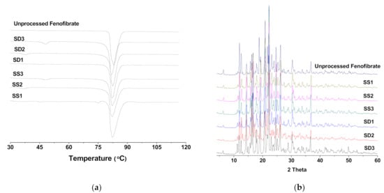 3.2. Physicochemical Characterization of Fenofibrate-Additive Microcomposite Particles