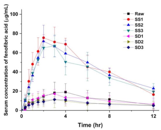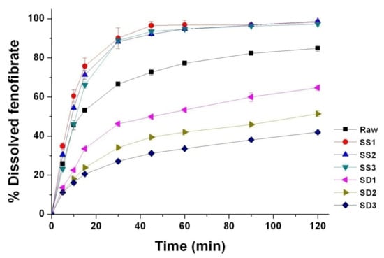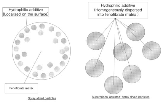 - Cha, K.-H.; Cho, K.-J.; Kim, M.-S.; Kim, J.-S.; Park, H.J.; Park, J.; Cho, W.; Park, J.-S.; Hwang, S.-J. Enhancement of the dissolution rate and bioavailability of fenofibrate by a melt-adsorption method using supercritical carbon dioxide. Int. J. Nanomed. 2012, 7, 5565. [Google Scholar]