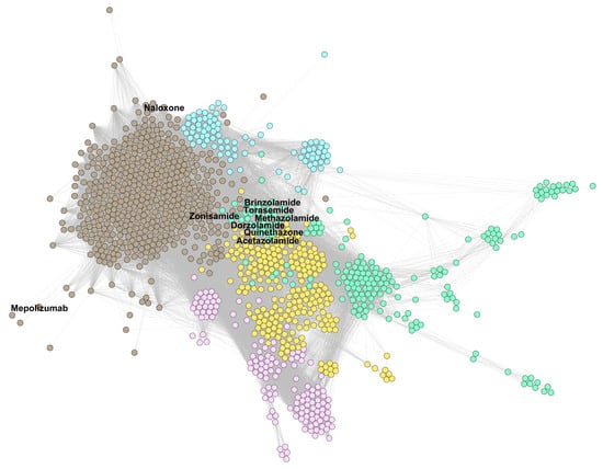 - Udrescu, L.; Sbârcea, L.; Topîrceanu, A.; Iovanovici, A.; Kurunczi, L.; Bogdan, P.; Udrescu, M. Clustering drug-drug interaction networks with energy model layouts: Community analysis and drug repurposing. Sci. Rep. 2016, 6, 1–10. [Google Scholar] [CrossRef] [PubMed]
