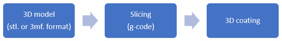 The 3D coating times depending on the number of coatings per 3D printing and their perimeters are summarized in Table 3. The main benefit is that it can be prepared in advance, whereas the steps of insertion of the matrix tablets and completion of the 3D coating process follow. This can save much more time, because the final 3D coating step represents only ca. 25% of the overall times.
