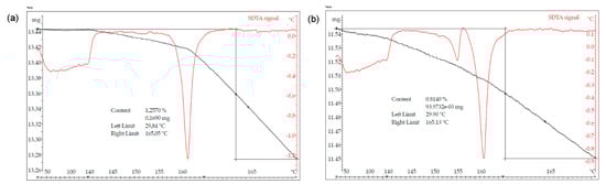 Thermogravimetric Analysis (TGA) was performed on a Mettler-Toledo TGA-851e thermobalance (Mettler Toledo, Columbus, OH, USA). Experimental conditions: alumina crucibles of 70 μL volume, atmosphere of dry nitrogen with 50 mL/min flow rate, heating rates of 1 °C/min and 10 °C/min.