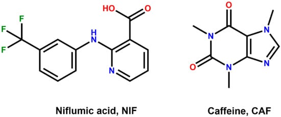 Chemical formula of niflumic acid (NIF) and caffeine (CAF).