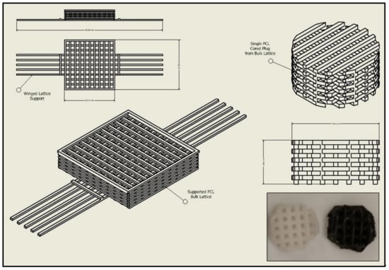 Thermosensitive bio-inks based on rehydrated PF127 powder demonstrated a potential to serve as a carrier for protein-rich additives that, while they may not maintain structural stability when subjected to aqueous conditions, can be coupled with a more rigid polymeric structure to enhance the intra-scaffold environment. As demonstrated in Figure 6, constructs were able to be readily coated with gel solutions, which may offer the advantage of tunable bioactive surfaces for basal constructs in future studies. Through a similar method, common tissue engineering additives, such as nano-hydroxyapatite (nHA) or tissue-specific growth factors, may be readily incorporated into a general and mechanically supportive ultra-structure, thereby allowing for a wide variety of regenerative medicine technologies to share common compositional attributes. While the lattice thermoplastic constructs assessed in this study were designed to serve as a bone tissue engineering scaffold, the skeletal architecture can be tailored based on the target tissue.