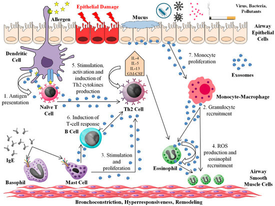 Schematic representation of the role of exosomes in allergy and asthma. This image is reproduced from reference [51]. The original publication was published under Creative Commons Attribution License (CC BY), 2017, Frontiers.