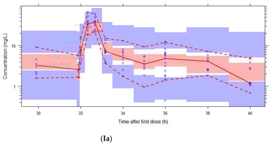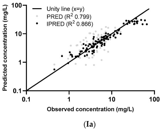 Fewer than 10% [24] of all concentrations (13/138 = 9.4%) were below the limit of quantification (0.5 mg/L) and were excluded from the popPK analysis. All concentrations above the LOQ (n = 125) were included for popPK analysis.