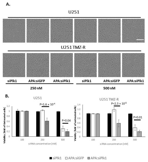 3.3. Treatment with APA:siPlk1 Polyplexes Reduces the Viability of Both U251 Cells and U251 TMZ-R Clone