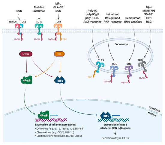 Luchner, M.; Reinke, S.; Milicic, A. TLR Agonists as Vaccine Adjuvants Targeting Cancer and Infectious Diseases. Pharmaceutics 2021, 13, 142. https://doi.org/10.3390/pharmaceutics13020142