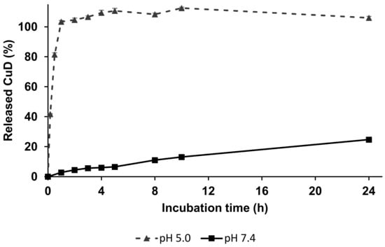 2.10. In Vitro Release of CuD from Linear Polymer–Drug Conjugate