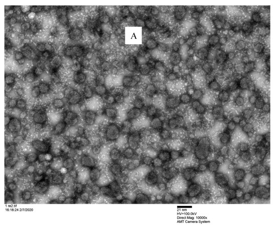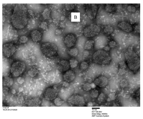 The morphological features (size and shape) of the nanomicelles in Fx/N2CyA-ASNg/ATF gelled mixtures were observed by TEM (JEOL 100 SX, model AMT XR80B, JEOL, Tokyo, Japan) equipped with a CCD camera. The samples were prepared using the following procedure: first, 10 μL of each sample was placed onto a copper grid with a formvar/carbon (200 mesh) membrane and left for 3 min, and after removing excess solution with filter papers, the copper grid was gently washed with drops of deionized water. Subsequently, the copper grid was negatively stained with 20 μL of uranyl acetate solution (2%, w/v) for 30 s. The excess solution was removed with filter papers, and the sample was left to dry by air for 20 min. Then, it was examined under TEM, operating at an acceleration voltage of 100 kV [32,39].