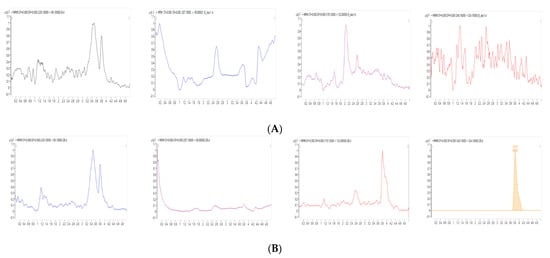 A Phenomenex Kinetex C18 (2.1 mm, I.D (internal diameter) × 100 mm, 1.7 µm) column was used for chromatographic separation. The mobile phase consisted of 0.1% formic acid in distilled water (solvent A) and 0.1% formic acid in acetonitrile (solvent B). The gradient elution program was as follows—0.0–2.0 min, 10% B; 2.0–2.5 min, 95% B; 2.5–4.0 min, 95% B; 4.0–4.1 min, 10% B; and 4.1–5.0 min, 10% B. The flow rate was set at 0.2 mL/min. The injection volume was 5 µL and the acquisition time was 5 min. The temperature of column was set at 40 ± 5 °C and the auto-sampler sample tray temperature was set at 10 ± 5 °C.