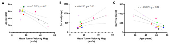 3.3. Patient Survival Correlates Positively with Mean Velocity Magnitude