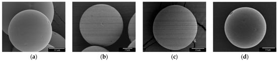 Dexamethasone (Dx)-loaded poly(lactic-co-glycolic) acid (PLGA) microspheres (MS, 20–53 µm) prepared using the oil-in-water (O/W) emulsion solvent evaporation technique at (a) 5500 rpm, (b) 8500 rpm, (c) 9500 rpm, and (d) 10,500 rpm.
