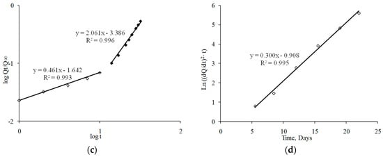 Two model-dependent approaches were selected to characterize the dissolution profiles: the Korsmeyer–Peppas equation (Equation (3)) [31,32] and the Heller and Baker equation (Equation (4)) [33].