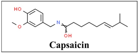 - CSID:1265957. Capsaicin. Available online: http://www.chemspider.com/Chemical-Structure.1265957.html (accessed on 27 January 2021).