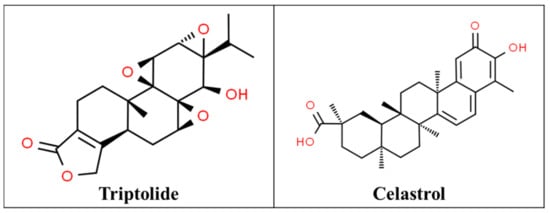 Chemical structures of triptolide [130] and celastrol [131].