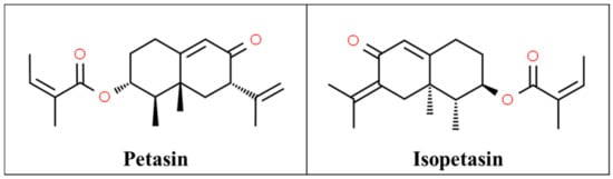 - CSID:4444859. Petasin. Available online: http://www.chemspider.com/Chemical-Structure.4444859.html (accessed on 27 January 2021).