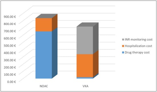 Health care resource use was studied in terms of drugs, hospitalizations, and outpatient specialist services and the average cost was €5156.13 for a VKA patient and €4630.57 for a NOAC patient for 12 months of follow-up [40].
