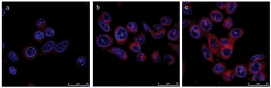 Cellular uptake of (a) free PS, (b) Fe3O4-Au-LA-PS (MGPS) and (c) Affibody -MGPS.by SK-OV-3 cells. Reprinted with permission from reference []. Copyright 2014 Elsevier.