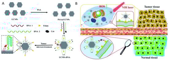 - Yu, Z.; Ge, Y.; Sun, Q.; Pan, W.; Wan, X.; Li, N.; Tang, B. A pre-protective strategy for precise tumor targeting and efficient photodynamic therapy with a switchable DNA/upconversion nanocomposite. Chem. Sci. 2018, 9, 3563–3569. [Google Scholar] [CrossRef]