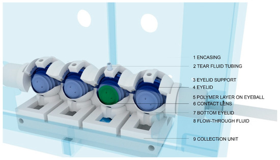 - Phan, C.M.; Walther, H.; Qiao, H.; Shinde, R.; Jones, L. Development of an Eye Model with a Physiological Blink Mechanism. Transl. Vis. Sci. Technol. 2019, 8, 1. [Google Scholar] [CrossRef]