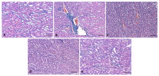All the kidney tissue samples were fixed in neutral formalin and paraffin embedded block was made. After thin sectioning (5 µm), the sections were mounted on slides. The hematoxylin and eosin (H&E) staining was performed to examine the architecture of kidney tissues. Histopathological examination was performed by using a light microscope (Olympus, Tokyo, Japan) and the slide pictures were shot accordingly. The histological findings were performed by double-blinded histopathologist. Furthermore, Masson’s trichrome was used to evaluate the morphology of fibrosis as per the manufacturer’s protocol (Abcam, UK).