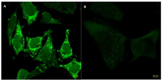 Confocal images showing the subcellular distribution of PLA-Jeff-FA/PLA3000PEG2000 micelles with fluorescein after 24 h incubation with HeLa cells (A) and normal human connective tissue cells (B) (reproduced from Jelonek et al. [81]).
