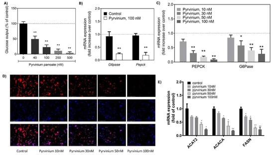 3.1. Pyrvinium Decreased Gluconeogenesis and Lipogenesis in Hepatocytes
