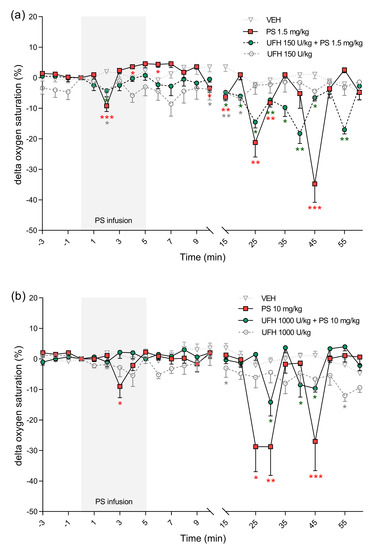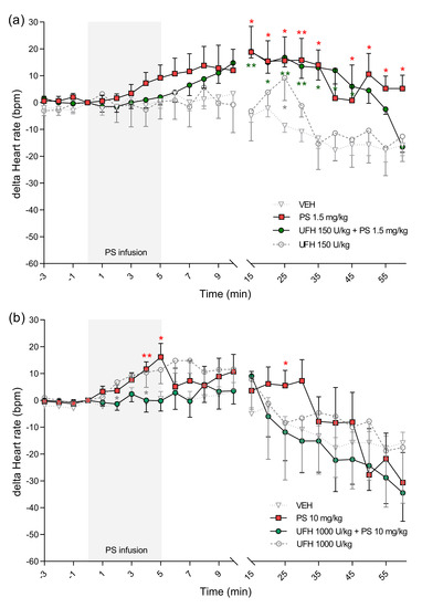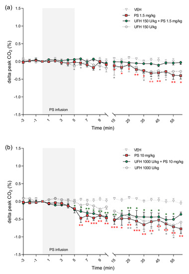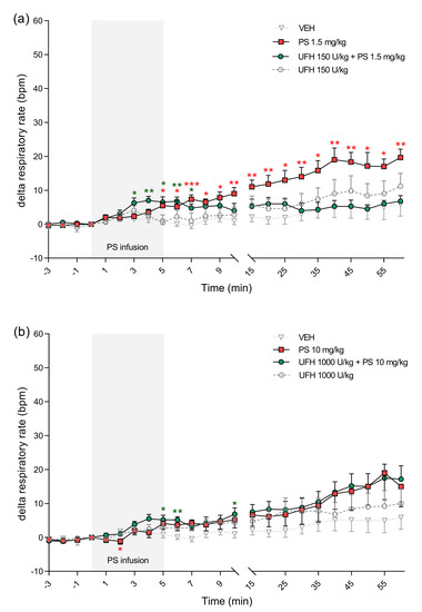2.5. Cardiorespiratory Parameters up to 60 min after a Single Injection of Heparin and Protamine into Rats