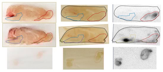 Transcardiac perfusion–fixation was performed on two rat brains, and 1–2 mm sections were made using sagittal precision rat brain slice matrices (Braintree Scientific, Braintree, MA, USA). Tissues were placed on glass slides, air-dried, and positioned against high-efficiency storage phosphor screens for 24 h prior to scanning. Screens were scanned at a 600 dpi resolution using a Bio-Rad FX Pro Plus Molecular Imager (Bio-Rad laboratories, Inc., Hercules, CA, USA).