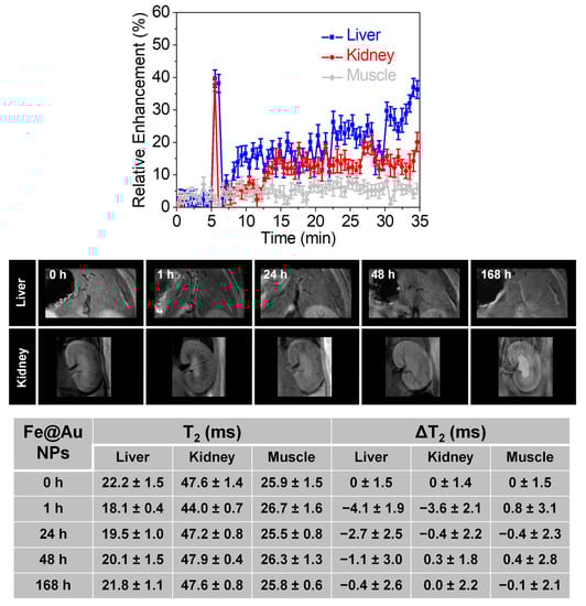 - Leal, M.P.; Muñoz-Hernández, C.; Berry, C.C.; García-Martín, M.L. In vivo pharmacokinetics of T2 contrast agents based on iron oxide nanoparticles: Optimization of blood circulation times. RSC Advances 2015, 5, 76883–76891. [Google Scholar] [CrossRef]