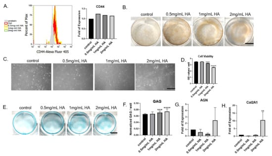 2.5. Effect of HA Treatment on CD44 Expression and Cell Viability