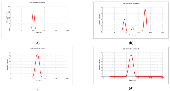 The size and size distribution of the micelles formed in Cremophor EL, Pluronic F127, and their mixture in aqueous solution was evaluated from DLS measurements (Figure 2).
