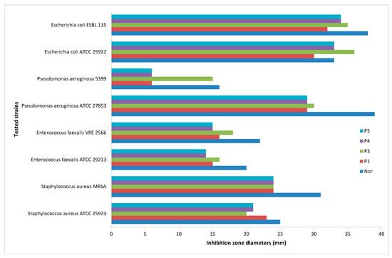 In Figure 9 the values of the diameter of inhibition zone recorded for both clinical and standard bacterial strains are presented.