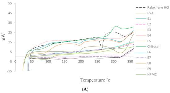 Raloxifene HCl (RLX), USP 99.7% purity, batch number CFR018007 was purchased from BDR Pharmaceuticals International (Mumbai, India). Cremophor® RH40 (polyoxyl 40 hydrogenated castor oil) was kindly provided by BASF SE (Ludwigshafen, Germany). Transcutol® HP was a kind gift from Gattefosse (Lyon, France). Miglyol® 812 (caprylic/capric triglyceride) was a kind gift from EIPICO for pharmaceutical industries (Cairo, Egypt). Hydroxypropyl methyl cellulose (HPMC), methocel™ K100LV (100 cP at a 2% addition rate in water), was purchased from Chempoint (Bellevue, WA, USA). Poly vinyl alcohol (PVA) (average Mw 146,000–186,000), chitosan (CS) high molecular weight (800–2000 cP), and acetonitrile were purchased from Sigma–Aldrich, Co. (St. Louis, MO, USA). Normal saline was purchased from Otsuka Pharmaceutical Co., S.A.E (Cairo, Egypt). Xylazine (XYLA-JECT®) was purchased from ADWIA Pharmaceuticals Co. (Cairo, Egypt). Ethyl acetate and formic acid were bought from El-Nasr Pharmaceutical Chemicals Co. (Cairo, Egypt). Olmesartan obtained from AstraZeneca (Cairo, Egypt). Potassium dihydrogen phosphate and disodium hydrogen phosphate were purchased from Sisco Research Laboratories (Mumbai, India). HPLC-grade methanol was purchased from Research-lab Fine Chem Industries (Mumbai, India). All other chemicals and solvents were of analytical grade and used as received.
