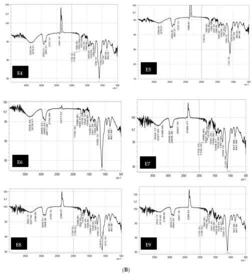 3.2.3. Spectroscopic Characterization of Percentage Transmission