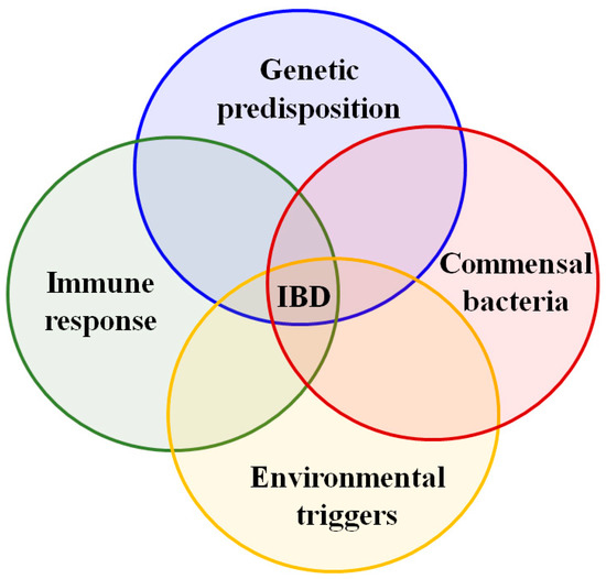 Etiology theories in inflammatory bowel disease (IBD), adapted from [9,10].