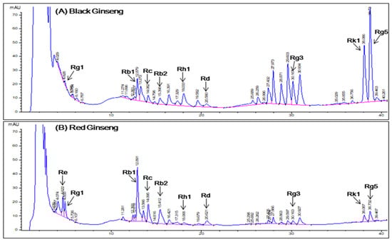 - Lee, Y.Y.; Saba, E.; Irfan, M.; Kim, M.; Yi-Le Chan, J.; Jeon, B.S.; Choi, S.K.; Rhee, M.H. The anti-inflammatory and anti-nociceptive effects of Korean black ginseng. Phytomedicine 2019, 54, 169–181. [Google Scholar] [CrossRef] [PubMed]